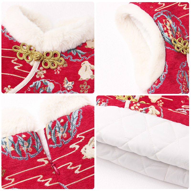 汉服儿童旗袍马甲女宝宝加厚保暖冬装 冬季 2025新款 拜年服女童唐装