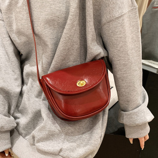酒红色复古包包女2025新款 质感斜挎小包轻便软皮手机包单肩马鞍包