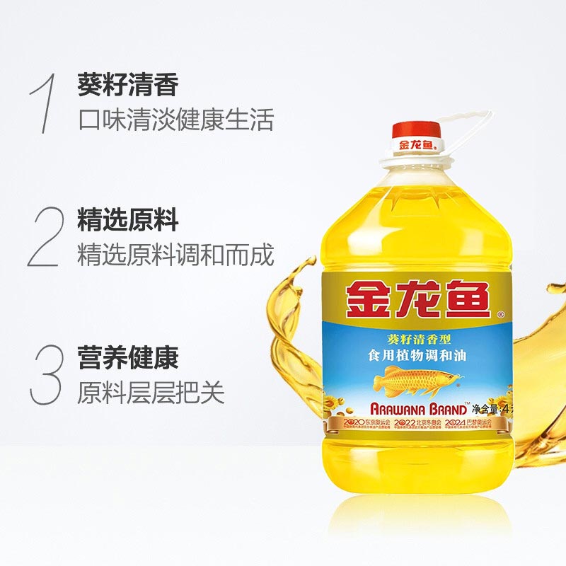 金龙鱼葵花籽清香型食用植物调和油4升 家用 炒菜烹饪食用油大桶装