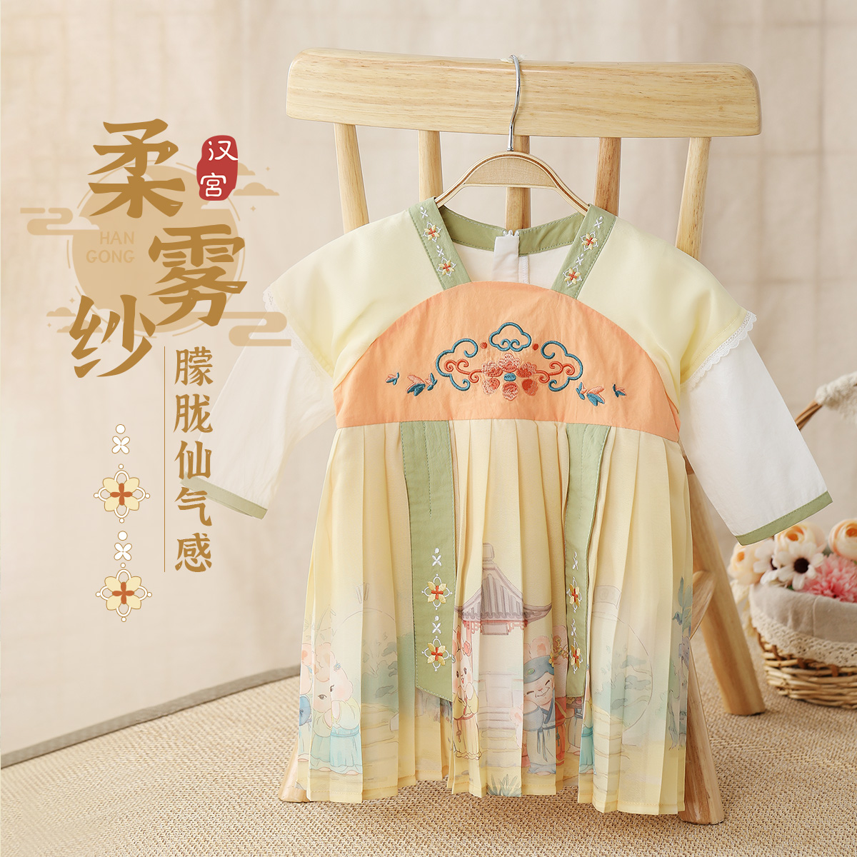 MOVEUP幻走2025冬季 .FUN系列假两件绣花抽褶下摆针织连衣裙 新款