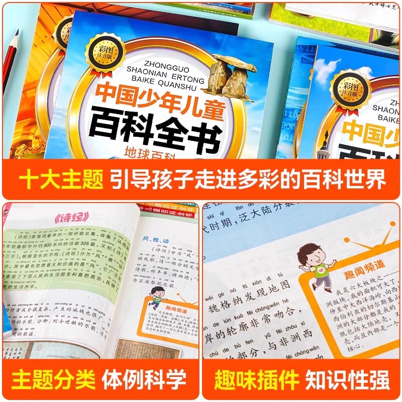 地球动物植物军事天文人体历史科技艺术海洋航天探秘科学探究探索世界军事百科彩图注音写给儿童 中国少年儿童百科全书 全10册