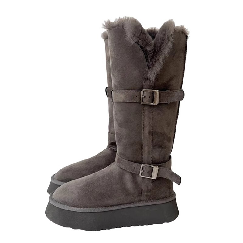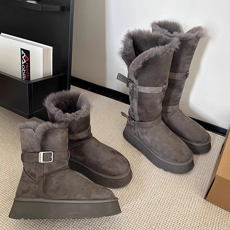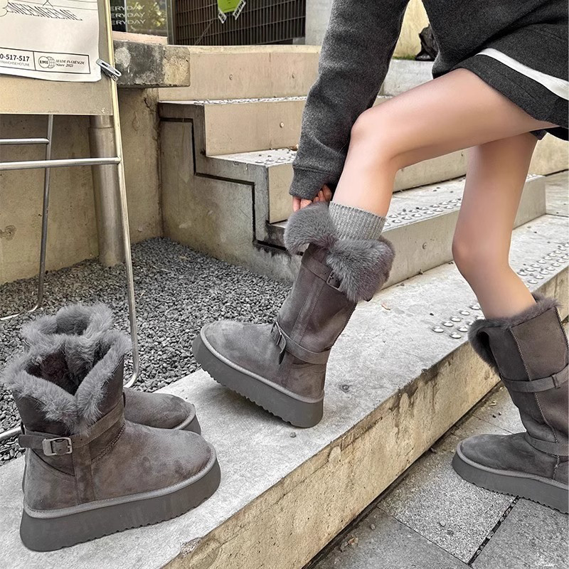 厚底增高加绒加厚长筒雪地棉鞋 新款 ~灰色雪地靴女2024冬季 自留版
