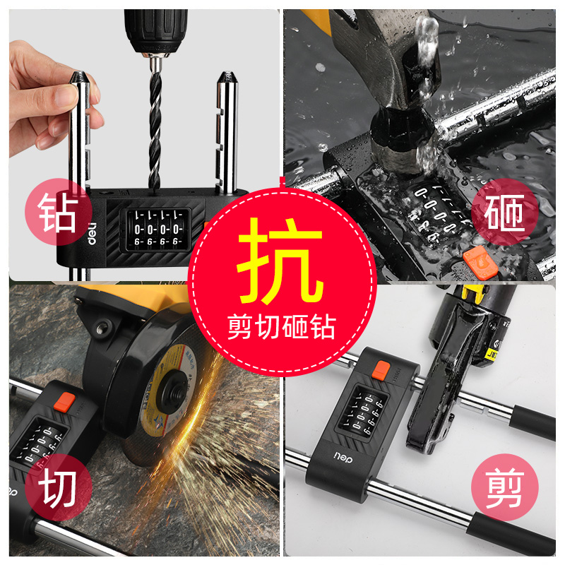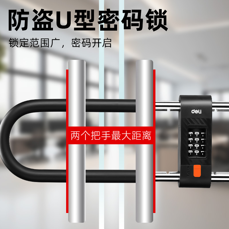得力玻璃门锁U型锁密码 锁具商铺店面门插锁推拉门玻璃锁长锁家用