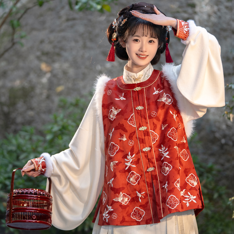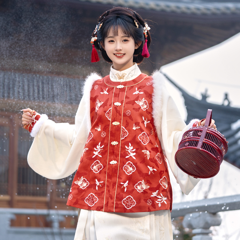 九兰雅韵 红色拜年服 清水溪汉初春秋汉服女国风比甲立领琵琶袖