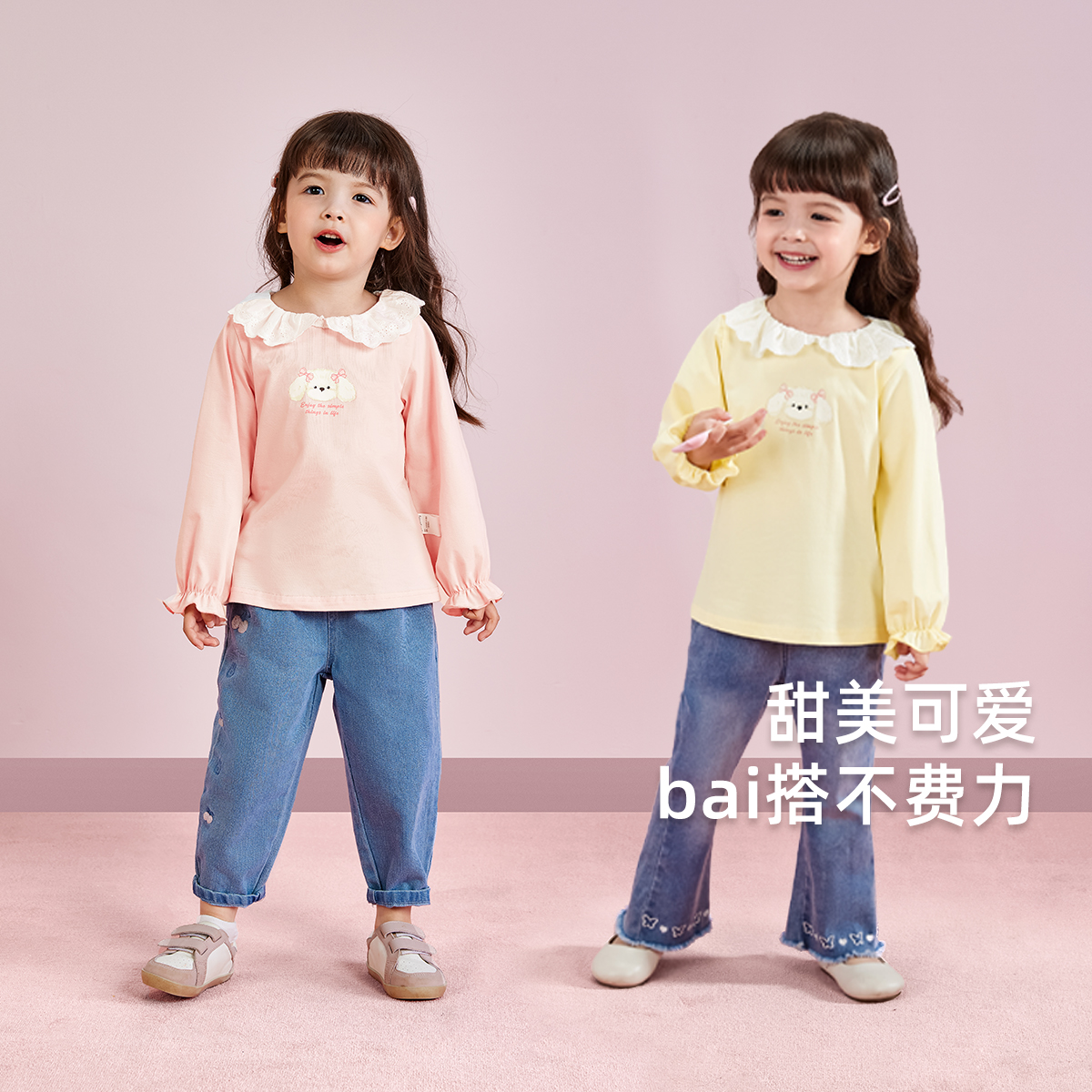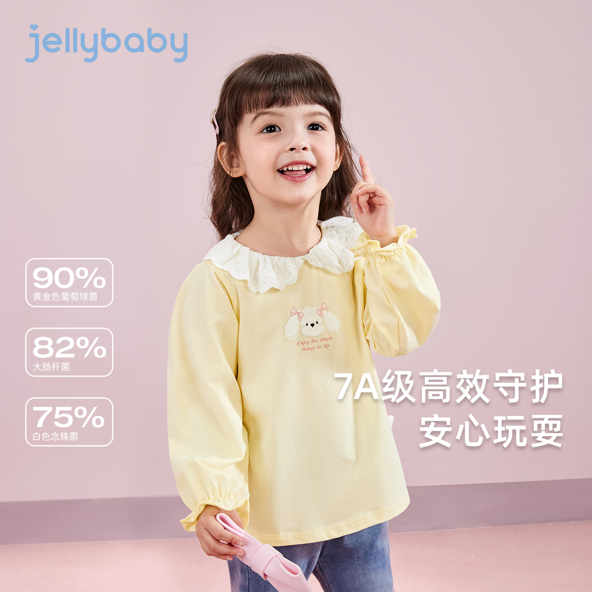 t恤宝宝娃娃领上衣小女孩洋气秋季 女童长袖 儿童可爱衣服 7A抑菌
