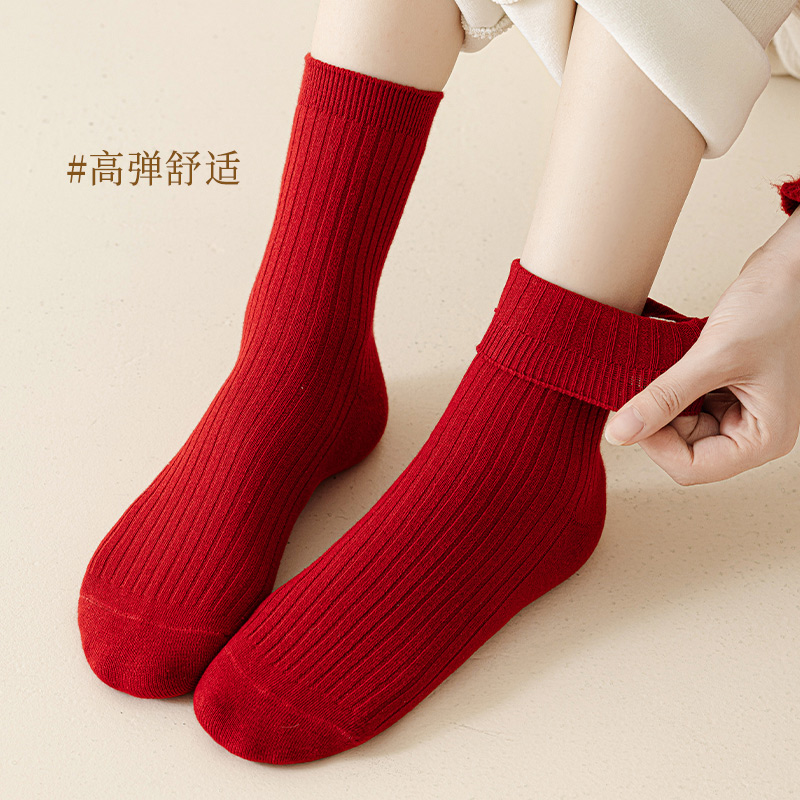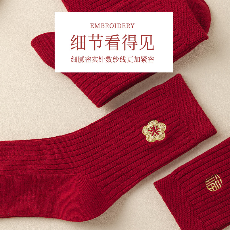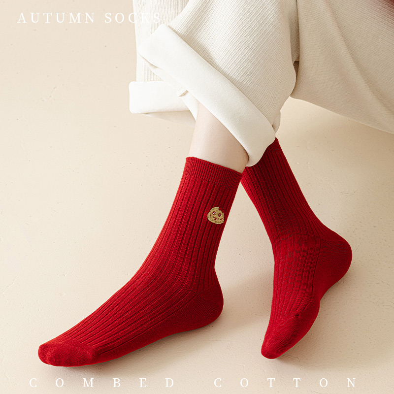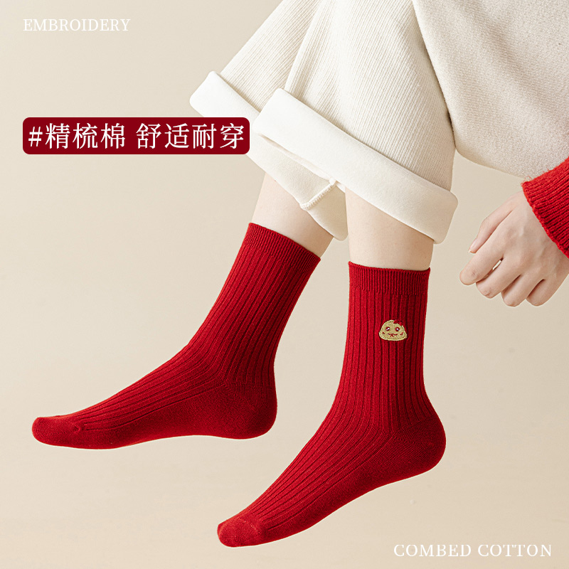 暗红袜子本命年可爱蛇刺绣蛇年堆堆袜ins潮网红新年过年礼物秋冬