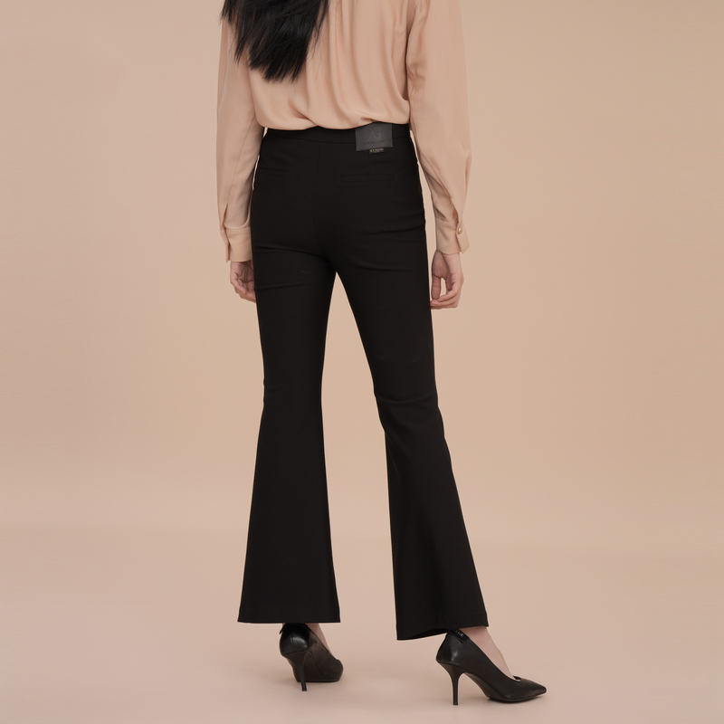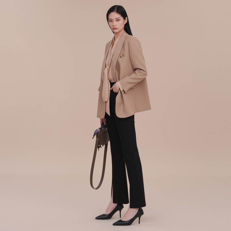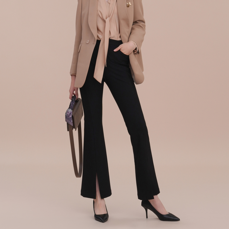 开叉设计通勤微喇长裤 新款 女 2025春季 XG雪歌黑色淑女风高腰休闲裤