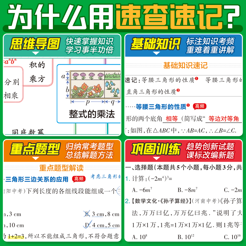2025初中速查速记语文数学英语生物地理历史道德与法治八年级上下册基础知识速查手册期中期末拿分初二小四门复习资料pass绿卡图书