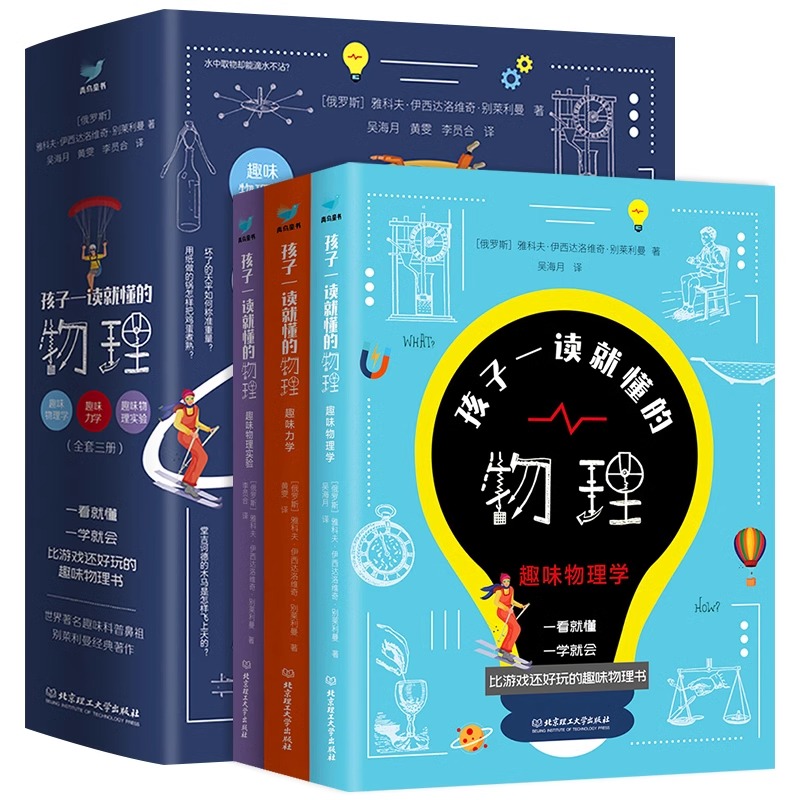 3册精装 物理 全彩漫画版 俄罗斯大师别莱利曼趣味物理学学生科普启蒙赠50个物理实验视频 15岁科学培养名校教师 孩子一读就懂