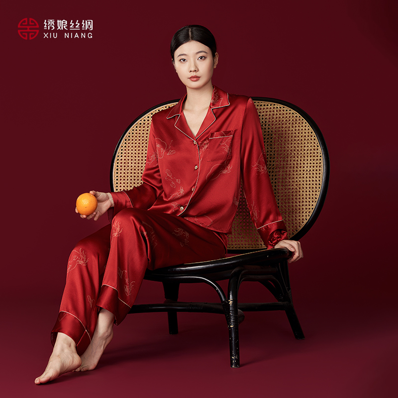 本命年 家居服套装 马克公主情侣睡衣女春秋款 纯棉红色新婚结婚男士