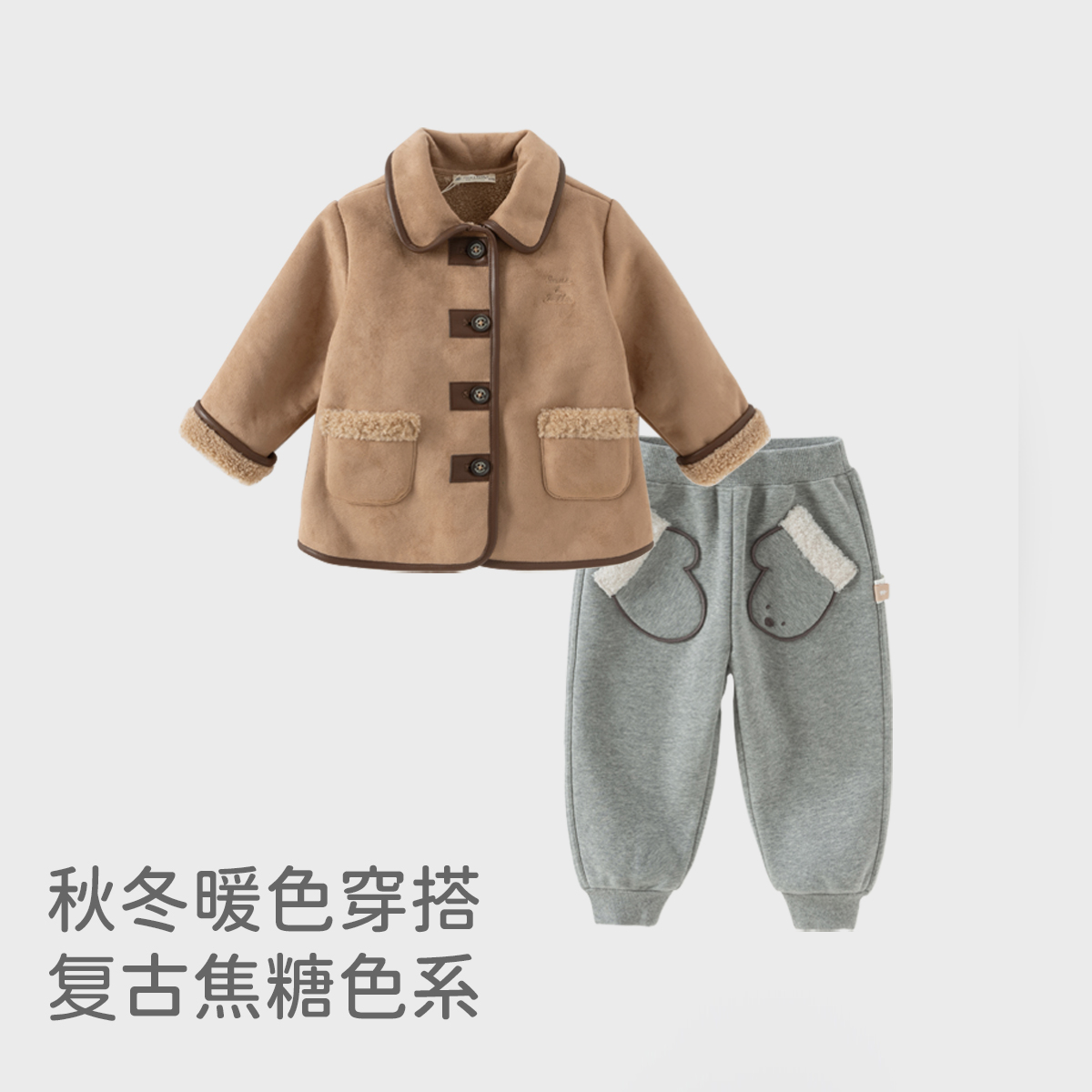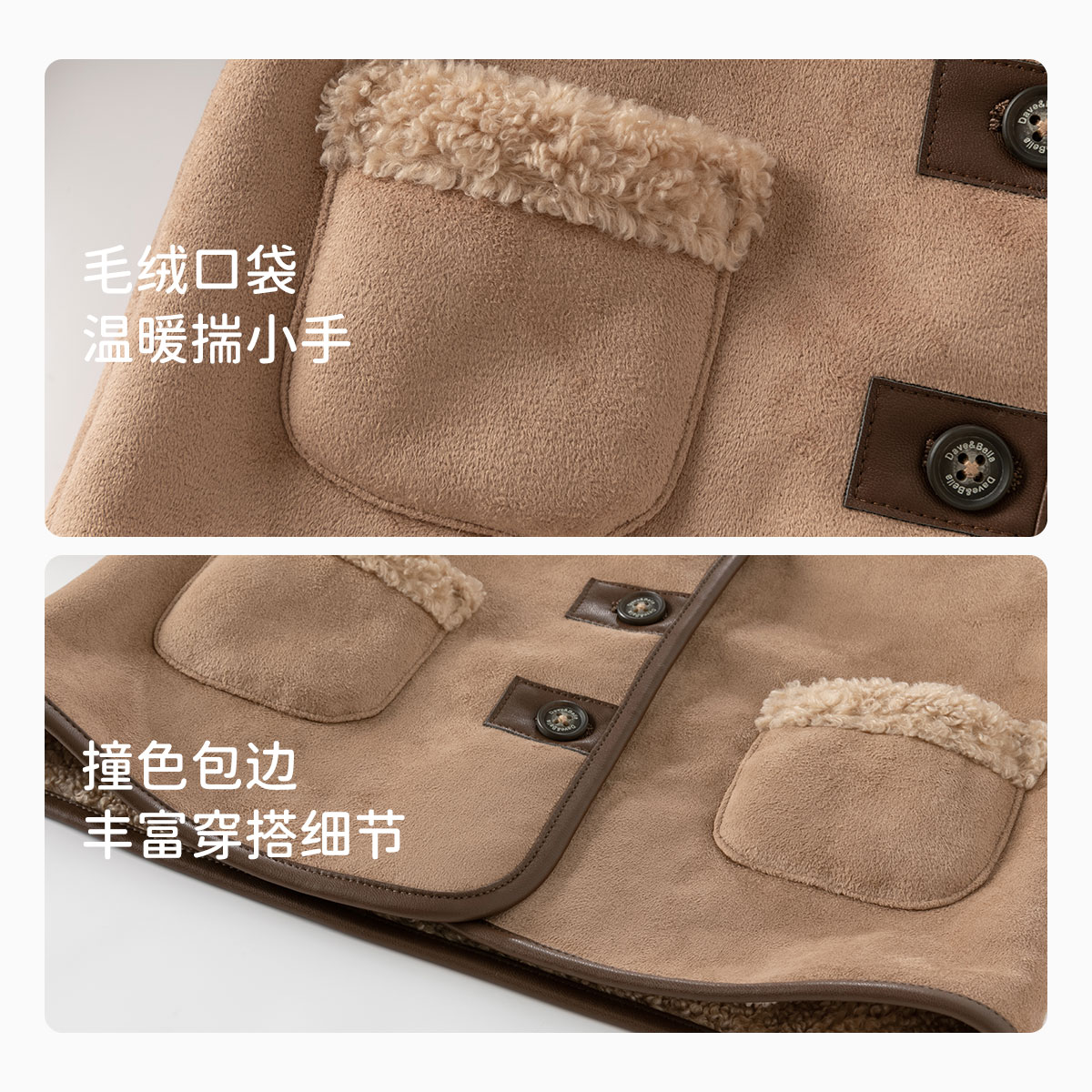 儿童颗粒绒风衣宝宝加绒 戴维贝拉男童麂皮绒外套冬装 清仓特价