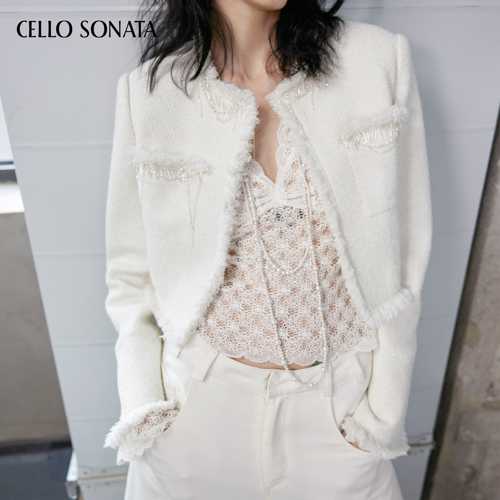 饰毛边短款 链条装 白色小香风外套夹克 SonataTS5早春系列 Cello