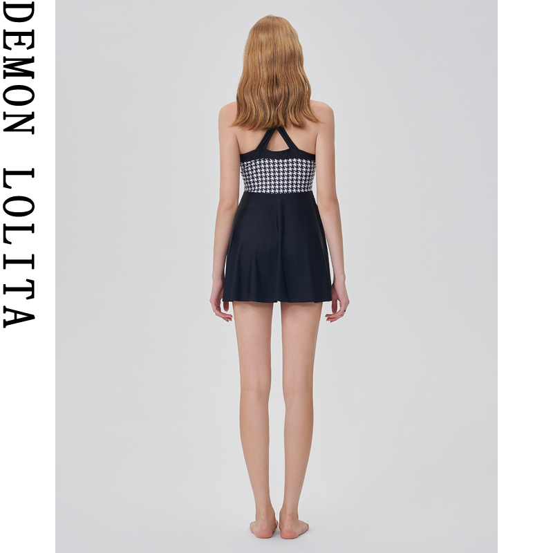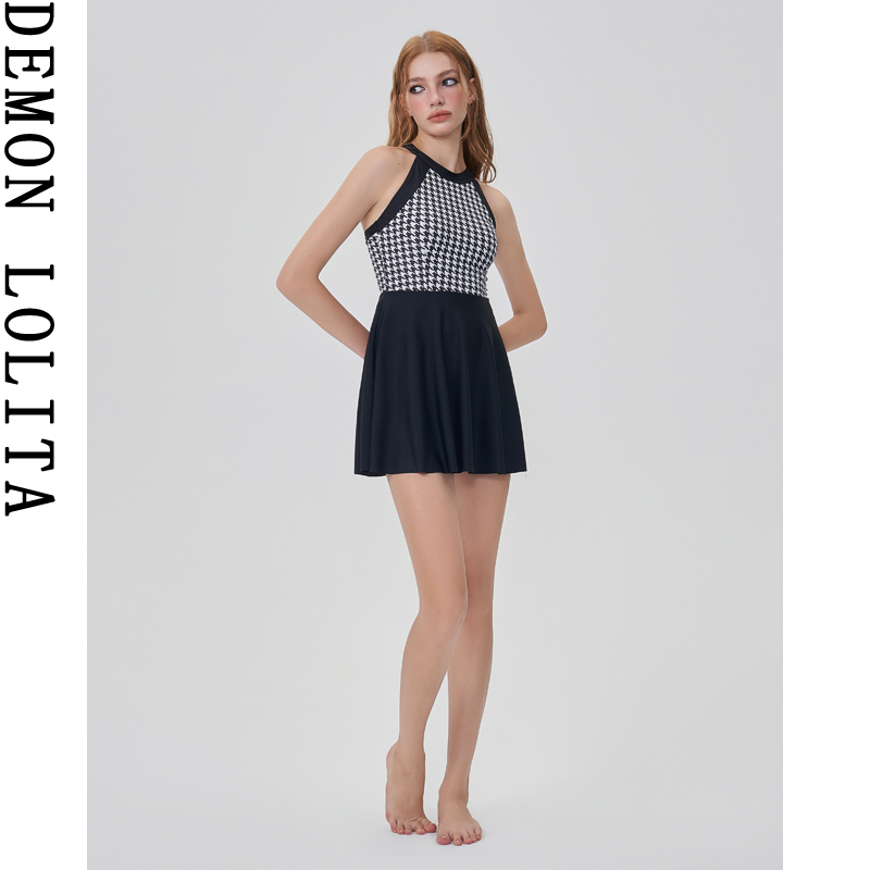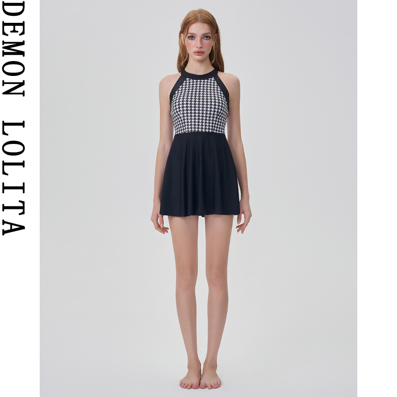 修身 连体千鸟格保守显瘦裙式 学生泡温泉泳衣女 2025新款 泳衣女款