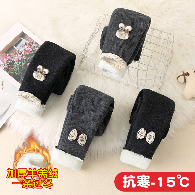 子儿童羊羔绒保暖弹力 婴儿宝宝一体绒加厚裤 女童加绒打底裤 秋冬款