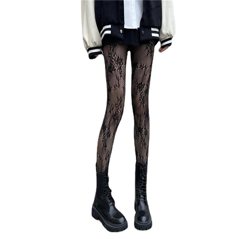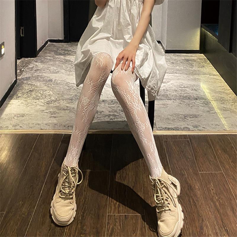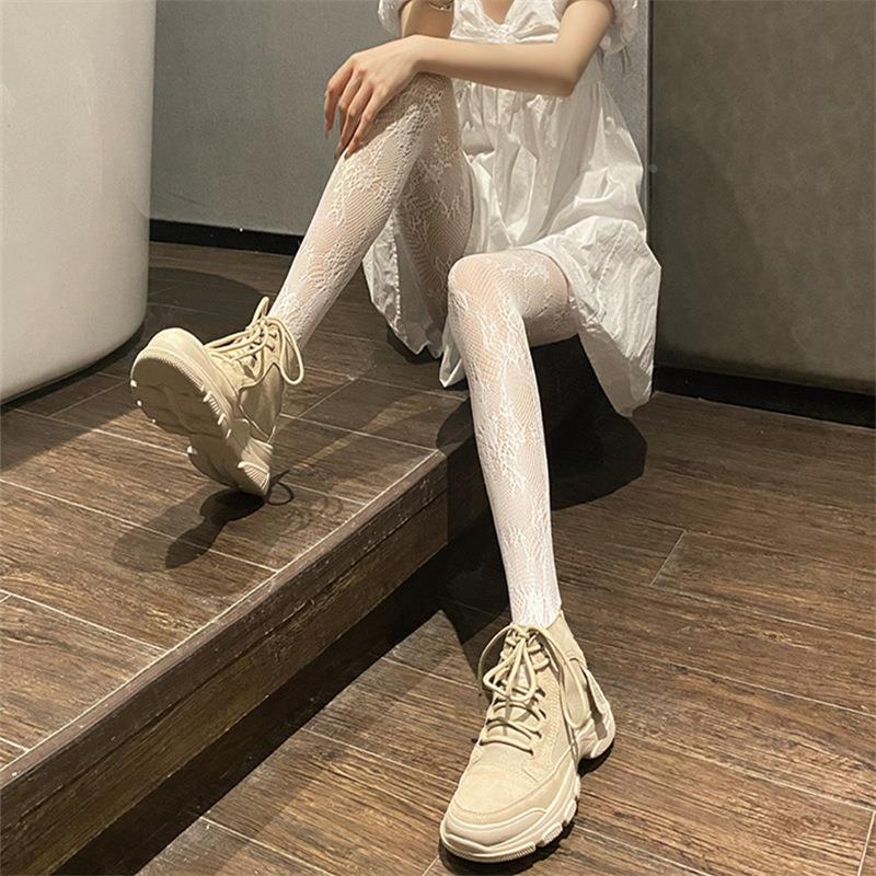 花藤蕾丝白色丝袜女薄款 袜镂空网格花朵黑色渔网袜 防勾丝连裤