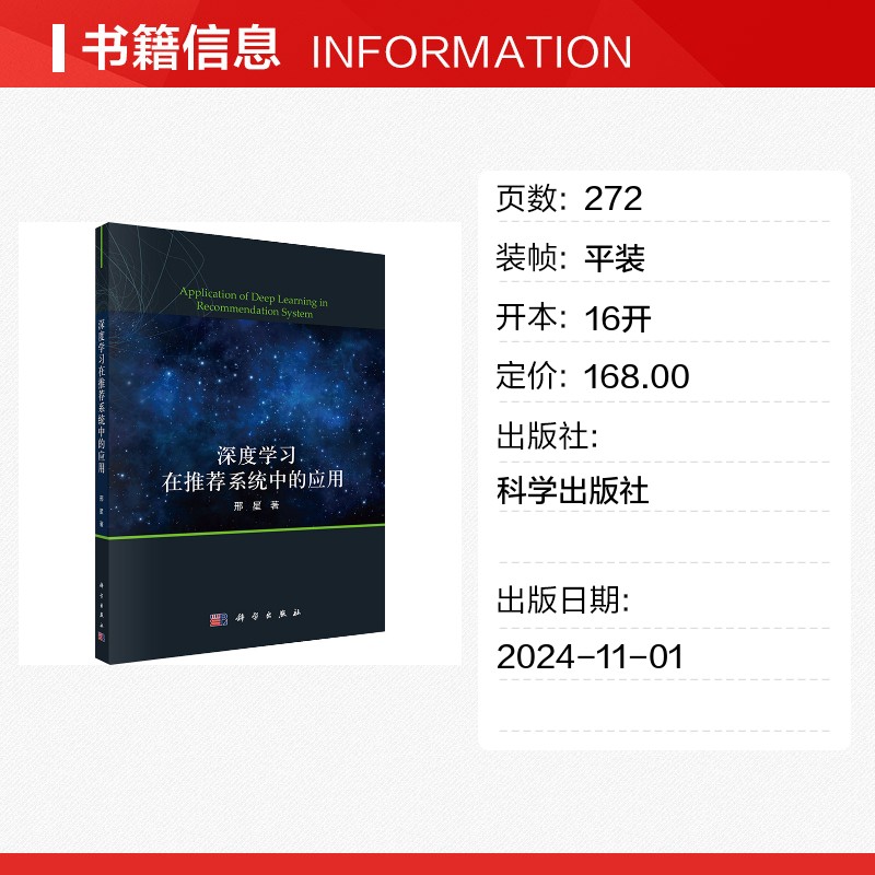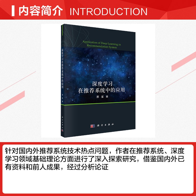 邢星 著 科学出版 系统中 社 图书籍 应用 新华书店正版 深度学习在推荐 计算机控制仿真与人工智能专业科技
