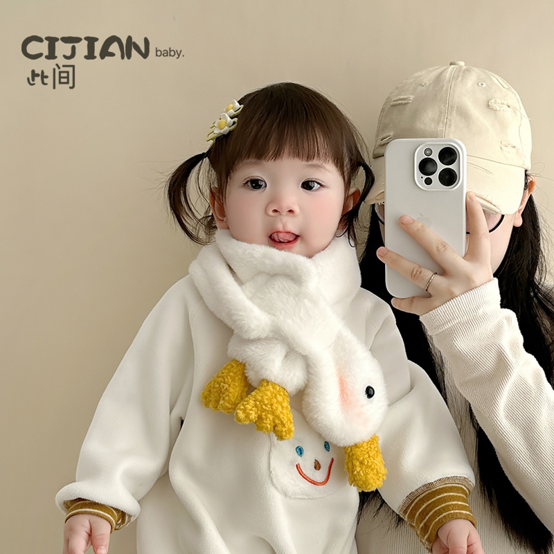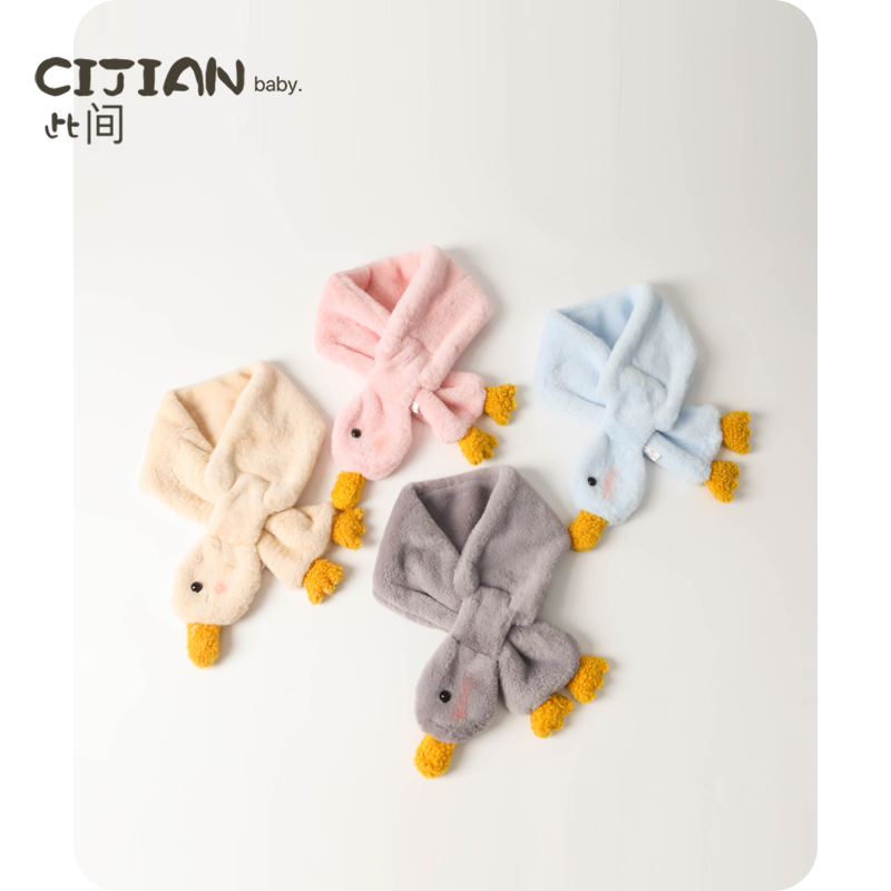 caramella围巾女秋冬季 围脖 少女毛绒交叉加厚保暖可爱卡通百搭款