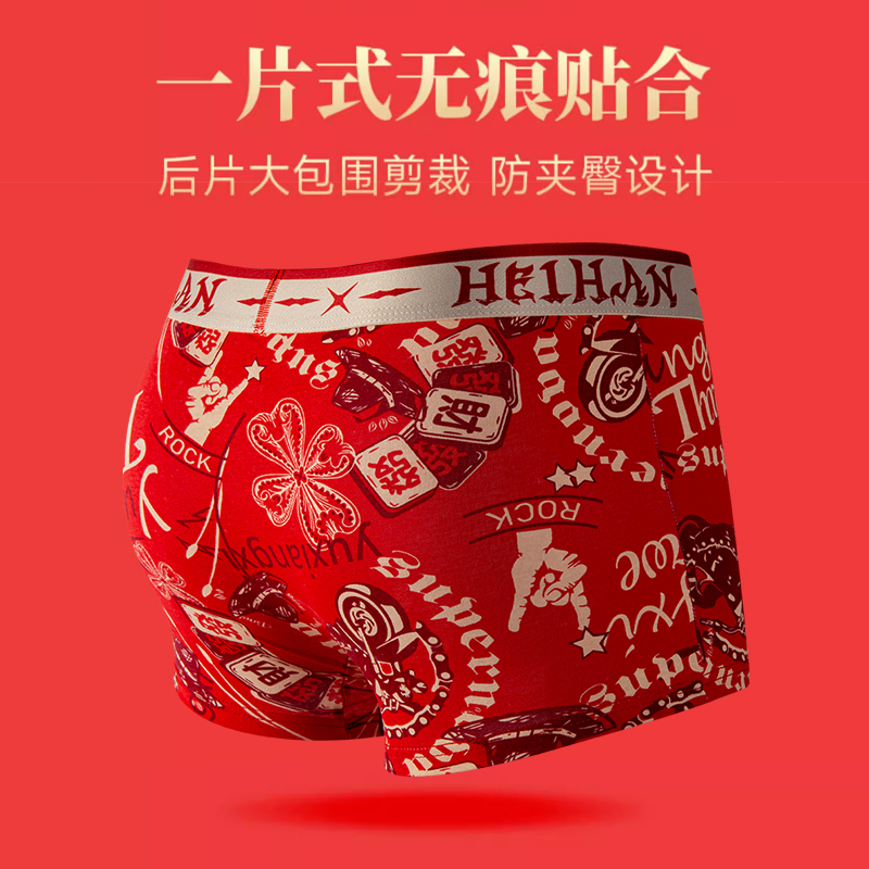 礼盒 纯棉抗菌裆本命年蛇马结婚礼物袜子平角短裤 红豆男士 红色内裤