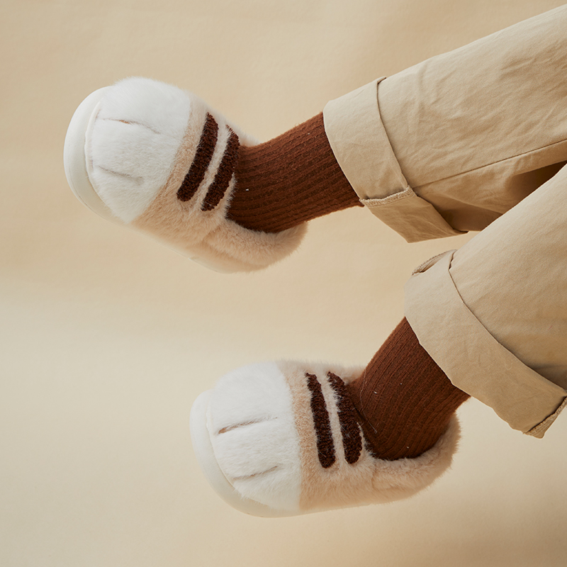 宝宝冬天室内毛绒保暖棉鞋 猫爪儿童棉拖鞋 一家三口拖鞋 亲子鞋 冬季