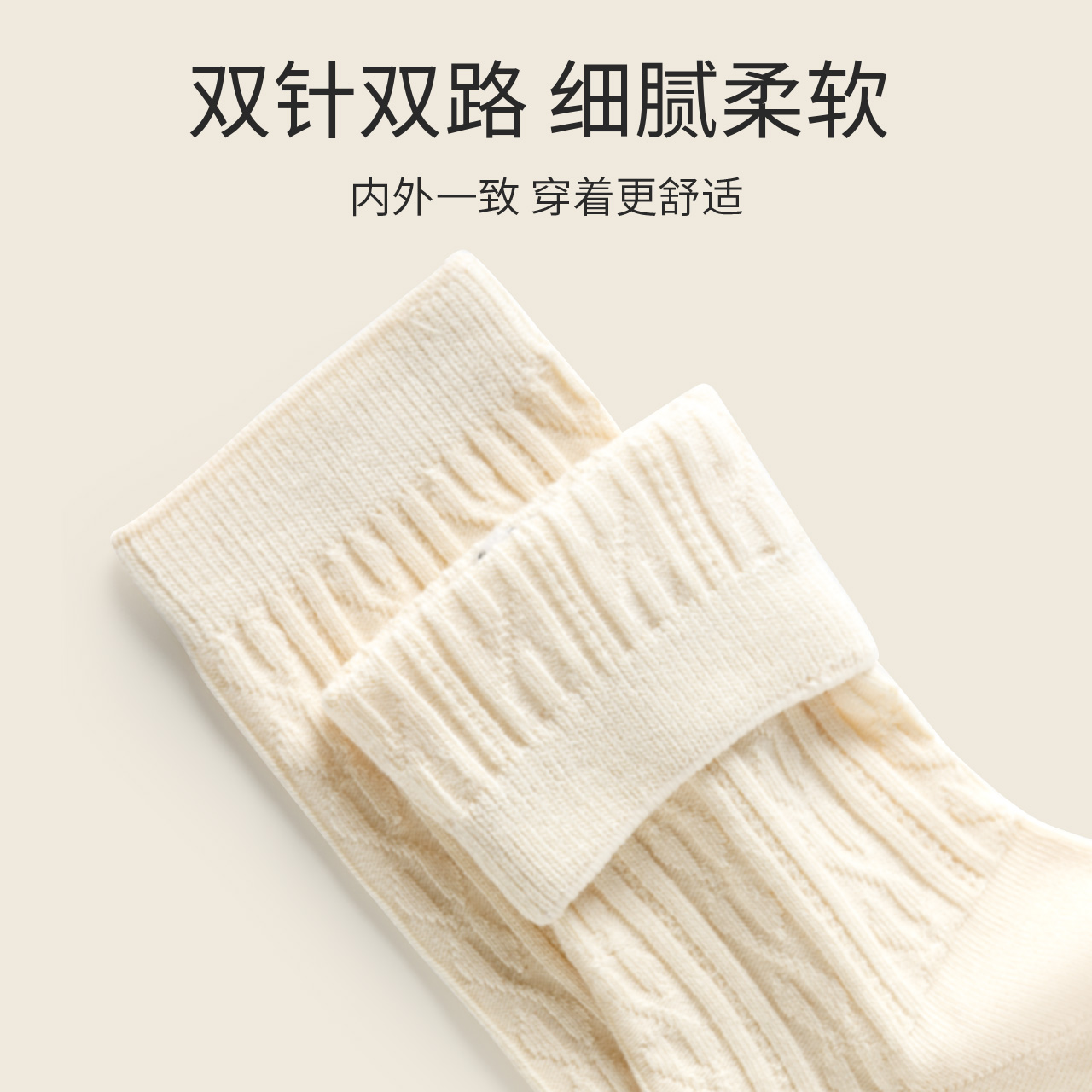 纯棉中筒棕咖色堆堆袜配勃肯鞋 2025新款 长袜 秋冬季 木耳边袜子女款