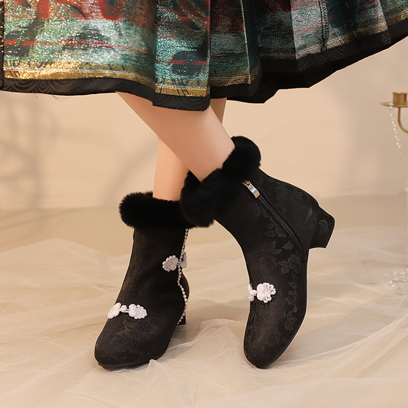 大童儿童鞋 新中式 子加绒汉服靴子 小孩软底高跟鞋 女童短靴2025冬季