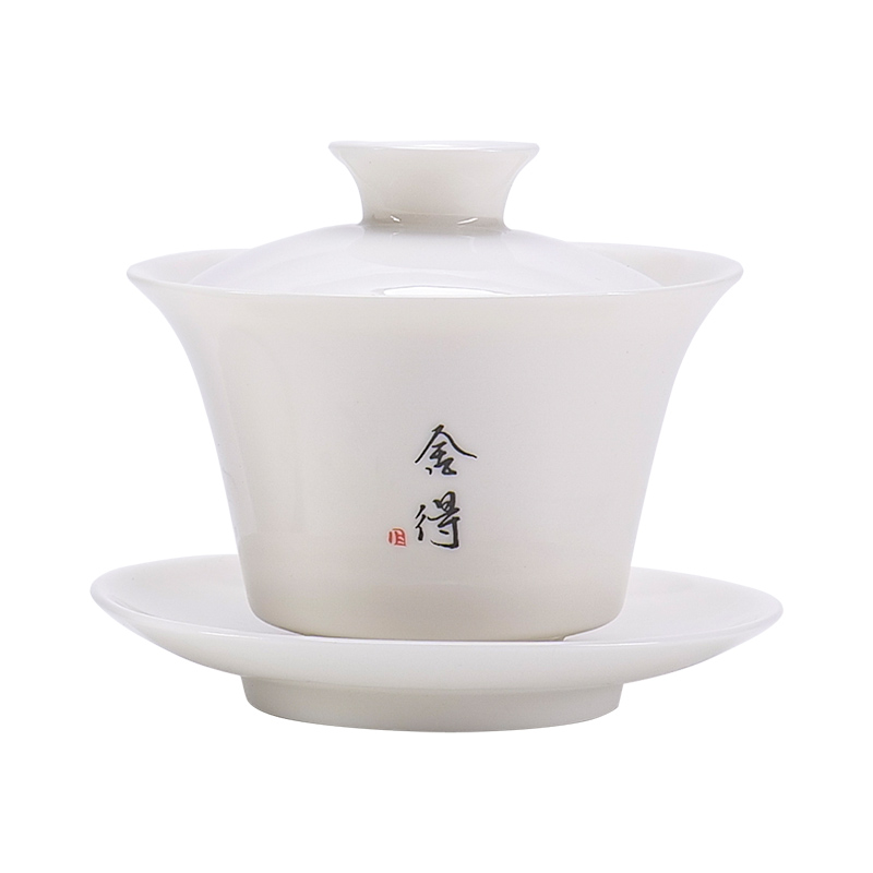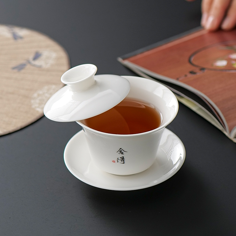 羊脂玉三才盖碗单个茶杯泡茶碗不烫手陶瓷家用功夫茶具可旋转悬停