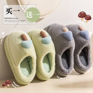 室内居家居情侣一对厚底包头毛拖鞋 冬季 秋冬天男 女款 买1送1棉拖鞋