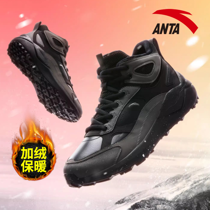 加绒男鞋 二高帮运动鞋 2025新款 皮面加厚保暖大棉鞋 子 冬季 安踏棉鞋