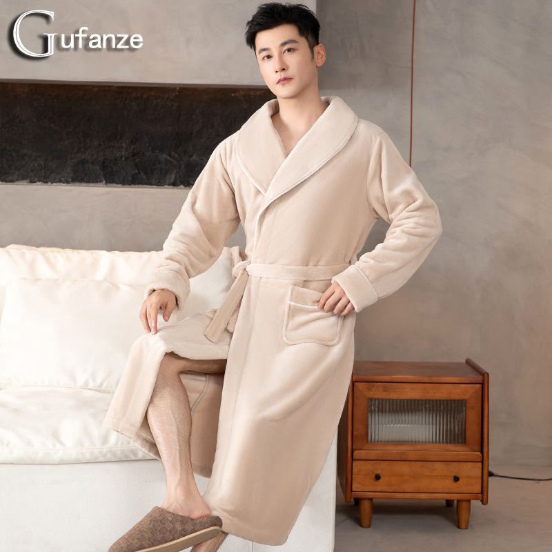 加大码 睡衣男士 珊瑚绒加厚加绒法兰绒浴袍男款 秋冬季 浴衣 睡袍长款