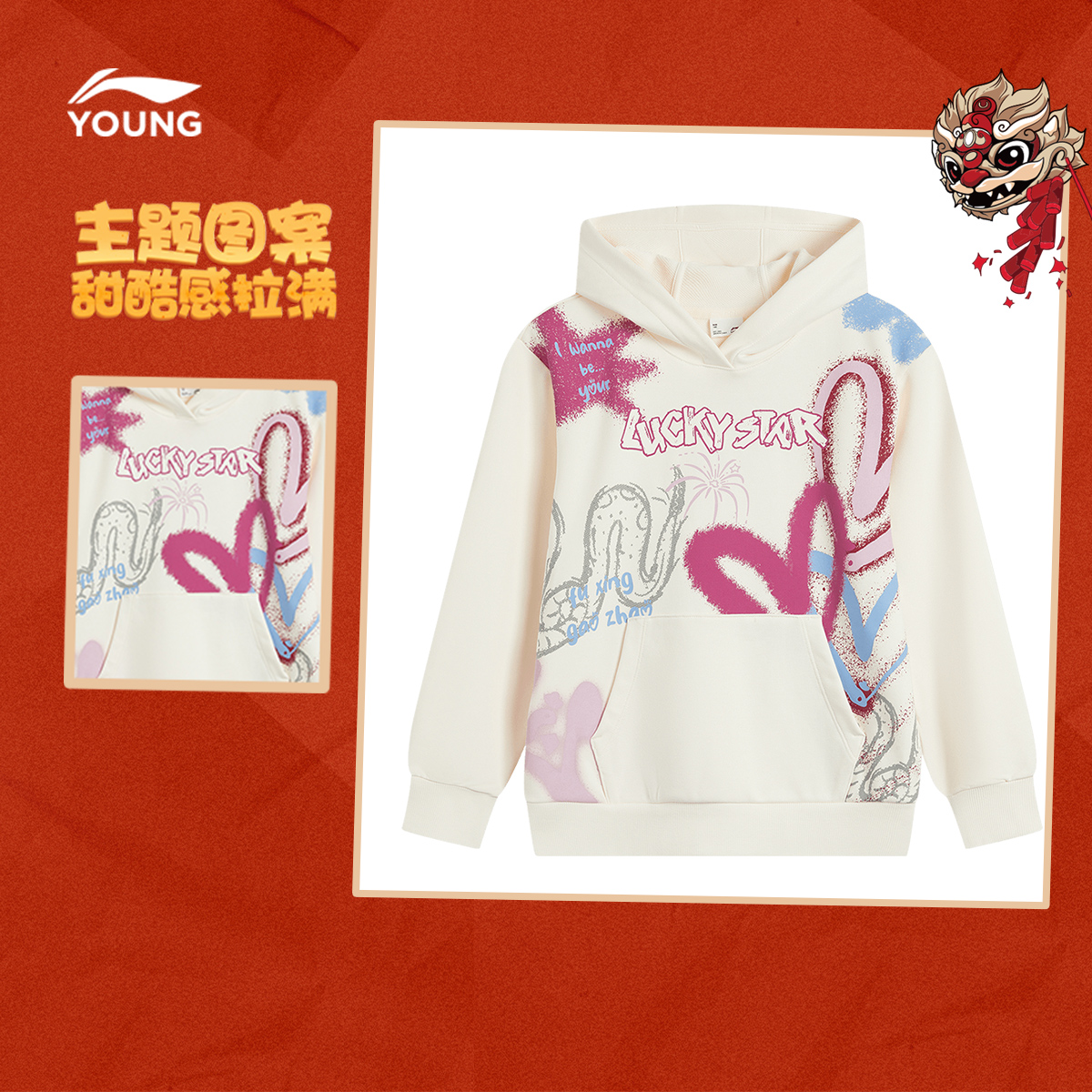 小女孩秋装 商场同款 衣服女童装 春秋款 李宁新年红色卫衣2025新款