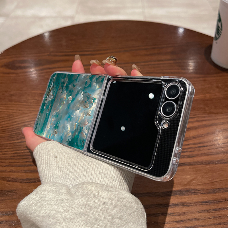 适用三星zflip7fe手机壳zflip6新款 zflip5折叠屏zflip4超薄w23flip透明w24flip全包防摔海上生花09男女保护套