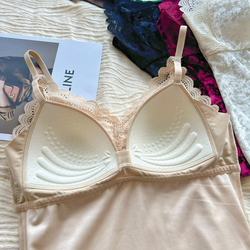 蕾丝拼接丝绒吊带背心女2024新款 秋冬内搭一体带胸垫打底美背上衣
