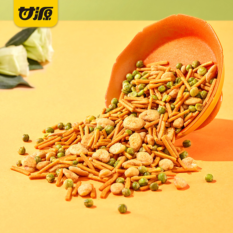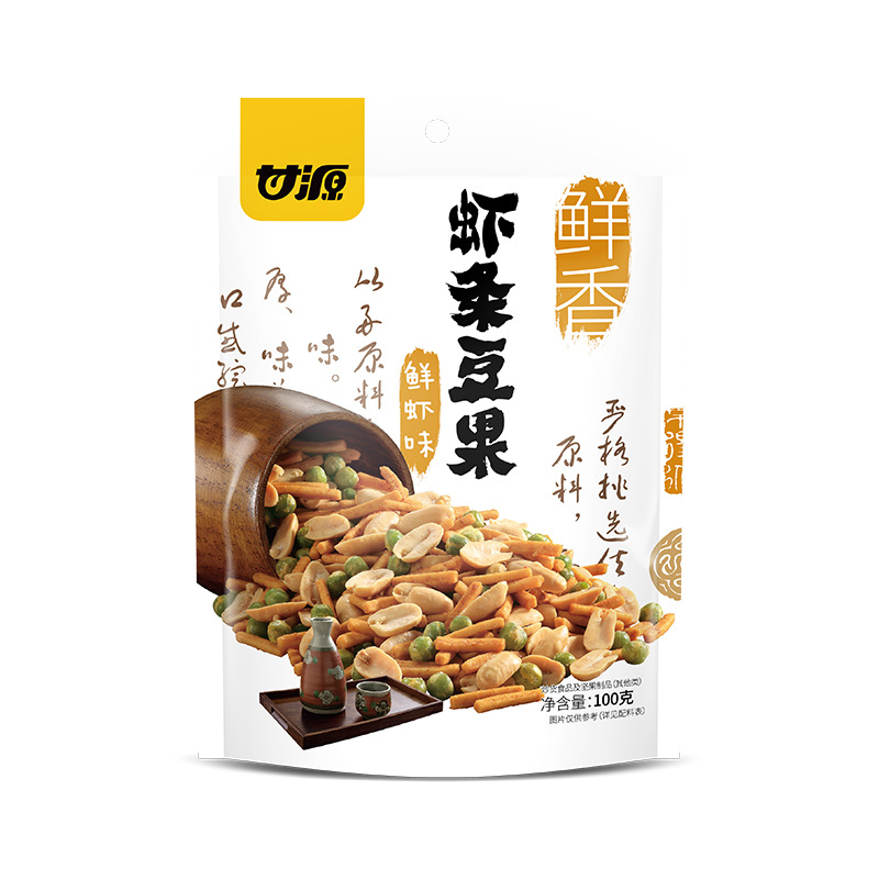 甘源虾条豆果100g鲜虾味烤肉味蟹黄味青豌豆坚果炒货休闲零食小吃