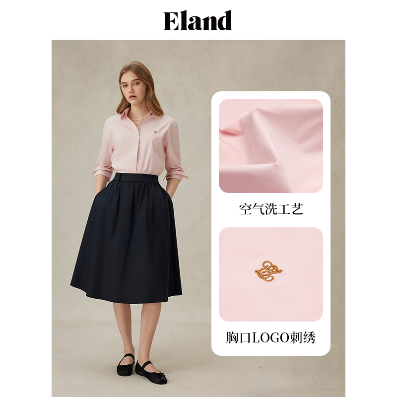公式 衬衣2025春季 衬衫 女纯色棉感舒适长袖 新款 Eland衣恋衬衫