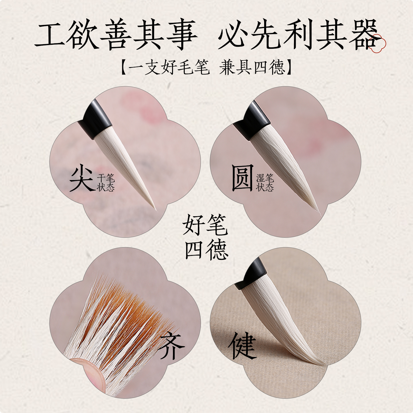 荣宝斋清风羊毫狼毫兼毫毛笔文房四宝初学者练习专业创作品欧体大中小楷书行书草书隶书书法笔羊兼毫毛笔