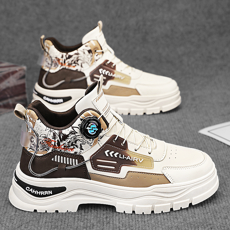 靴子 真皮防水厚底增高工装 森马马丁靴男秋季 高帮百搭休闲白色板鞋