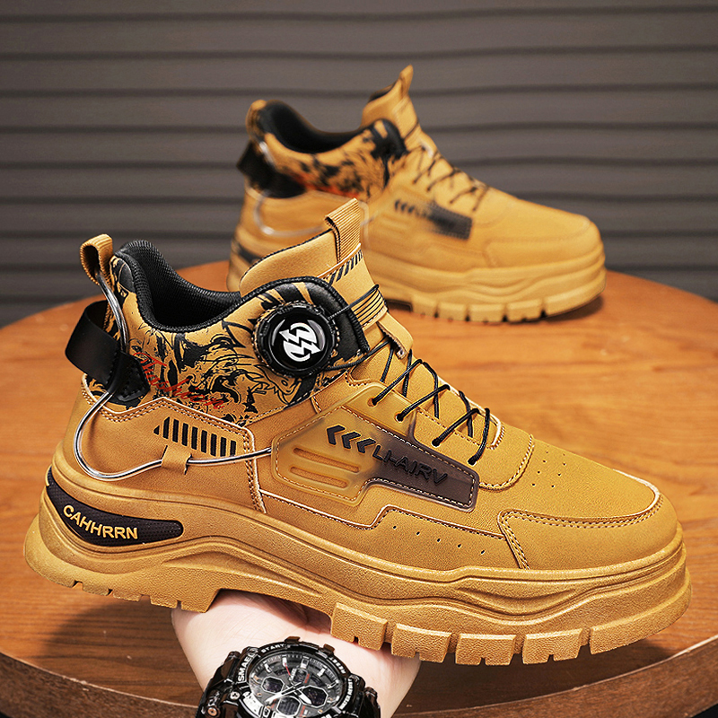 冬季 加绒靴子百搭高帮休闲皮鞋 男鞋 潮流男士 韩版 马丁靴男2025新款