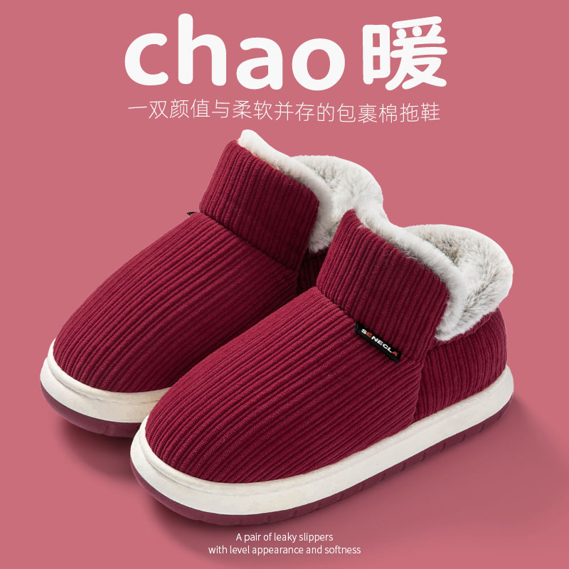 毛棉鞋 中老年包跟棉拖鞋 室内家居防滑保暖男士 2024新款 加绒 女冬季