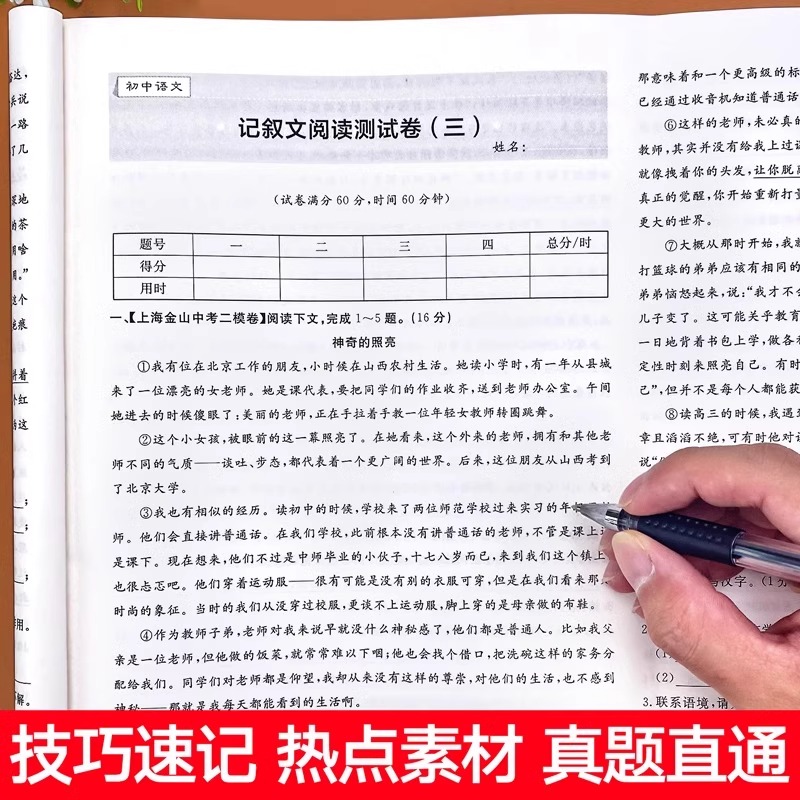 初中语文阅读理解专项训练书满分测试卷七八九年级语文课外阅读强化训练初一初二初三中考答题模板提分技巧现代文古诗文阅读公式 法