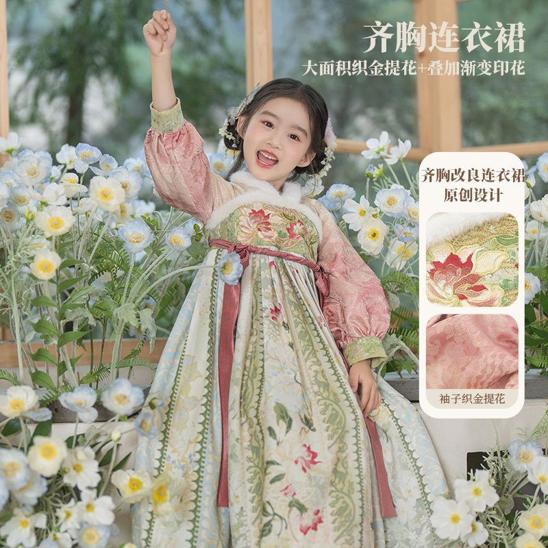 连衣裙新款 十三余童装 超仙新中式 国风汉服女童冬季 茶马一梦