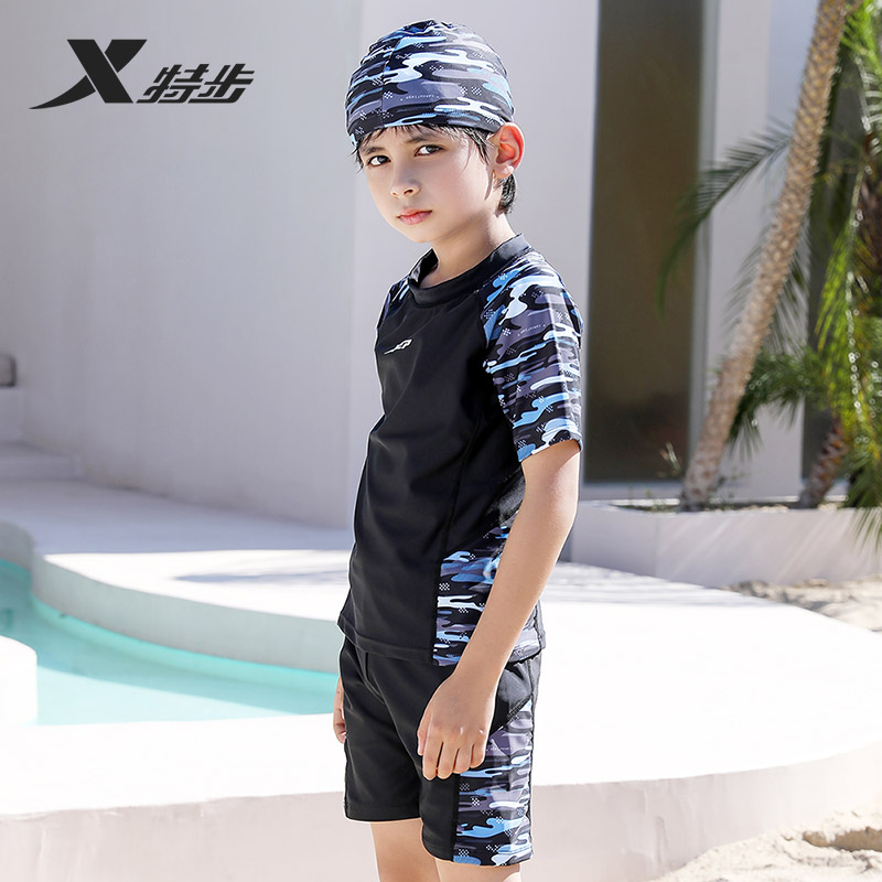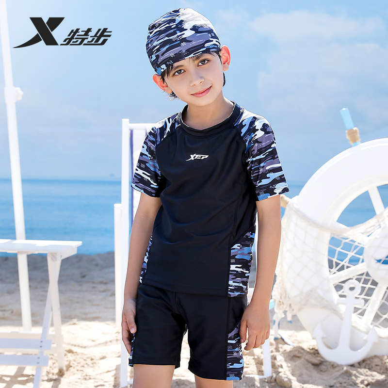 速干套装 2025新款 男孩温泉游泳裤 特步儿童泳衣男童中大童分体泳装