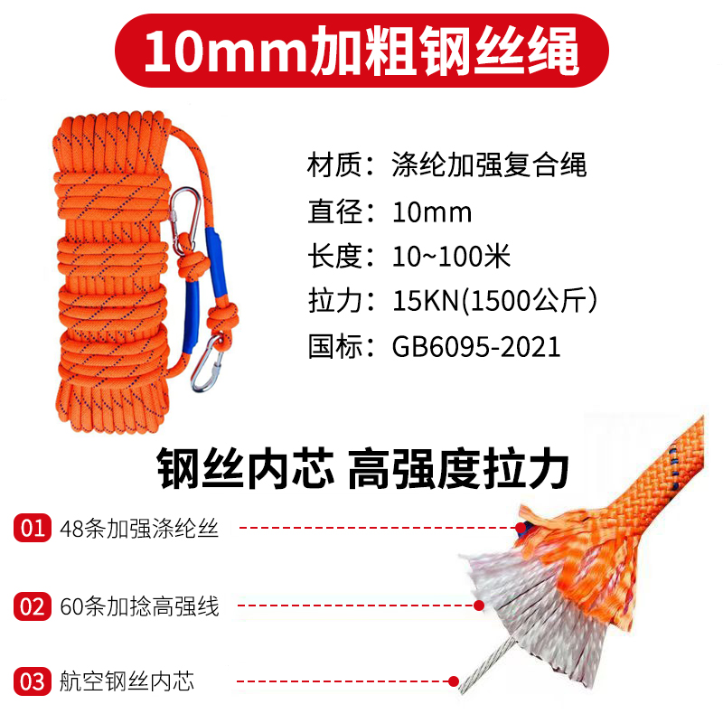 科维曼高楼火灾逃生绳安全绳家用高层缓降器地震应急救援绳救生绳