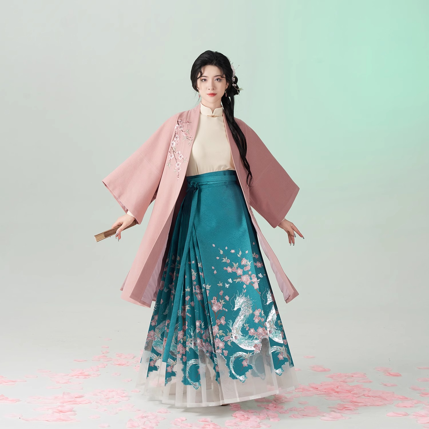 蕴雪待春织造司原创明制龙年汉服套装 国风改良呢子大衣马面裙秋冬