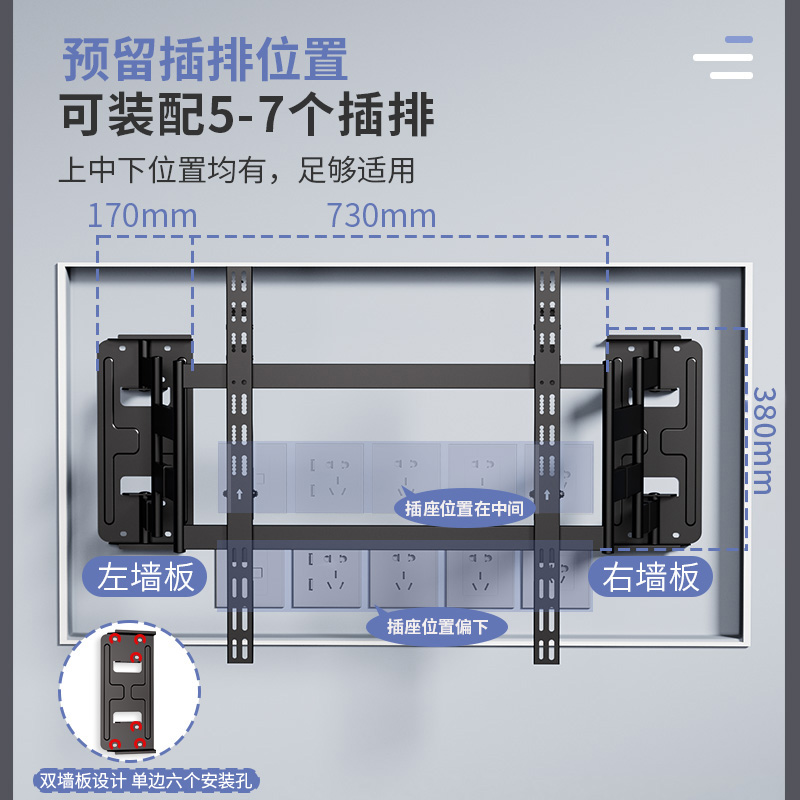 超薄伸缩电视机挂架适用雷鸟TCL海信75 85英寸内嵌避插座支架NX90