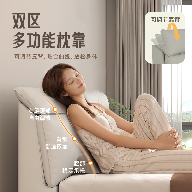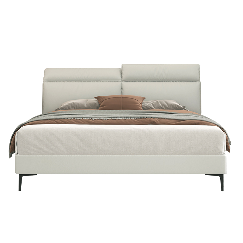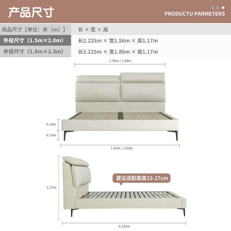雅兰简约现代真皮床主卧室双人床软包1.5米实木床架 原栖
