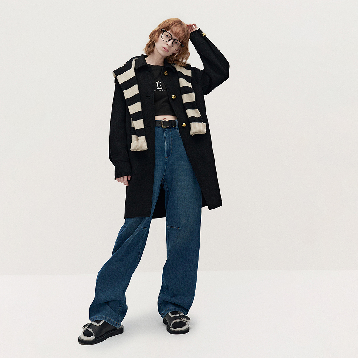 ochirly欧时力香蕉裤 松弛感复古显瘦秋冬尖货 加绒牛仔裤