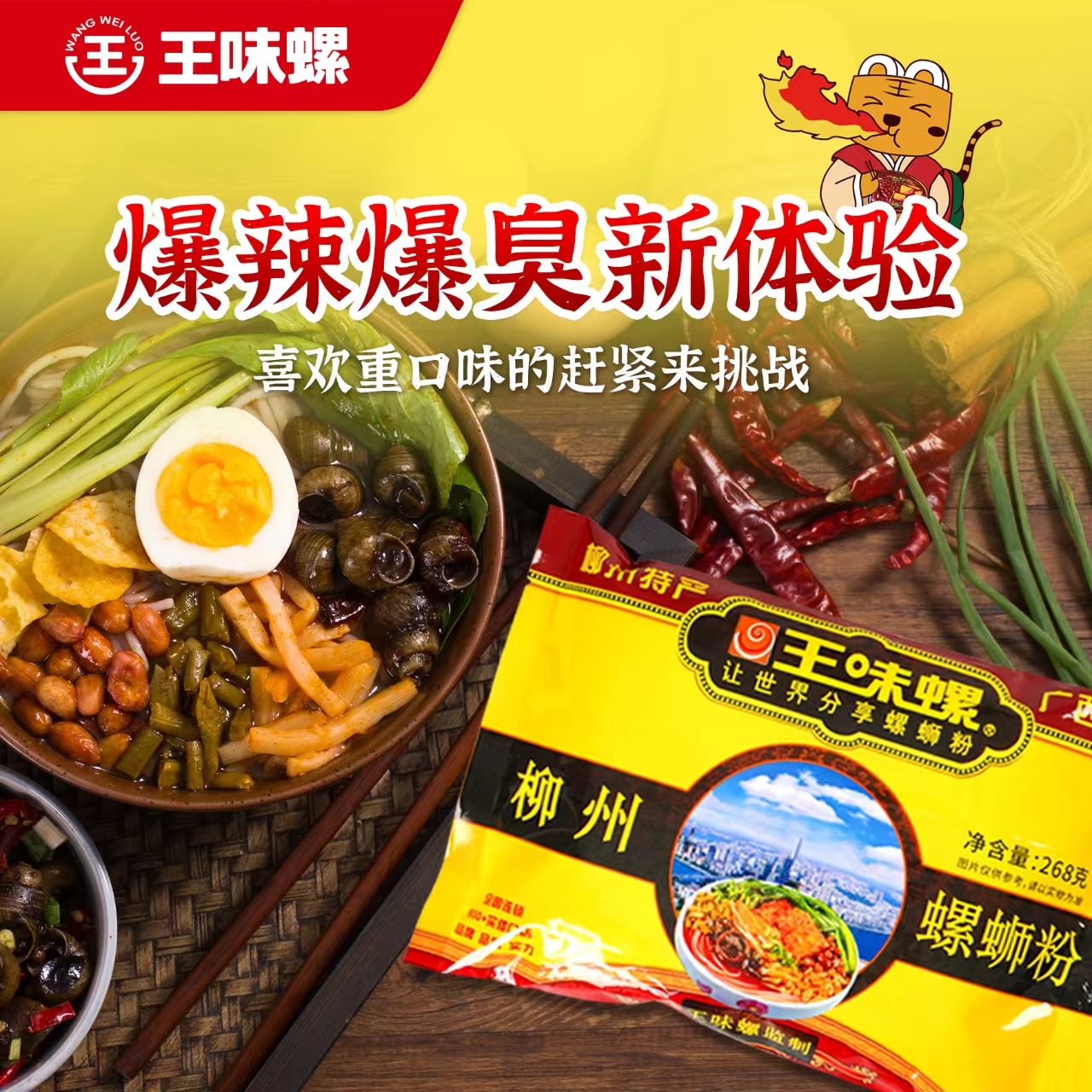 王味螺经典 带螺肉螺蛳粉方便速食香辣小吃 原柳州螺蛳粉268克4袋装