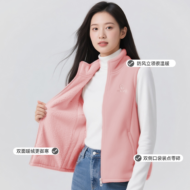 立领摇粒绒马甲背心舒适外穿休闲外套 女士短款 雪中飞2025秋季 新款