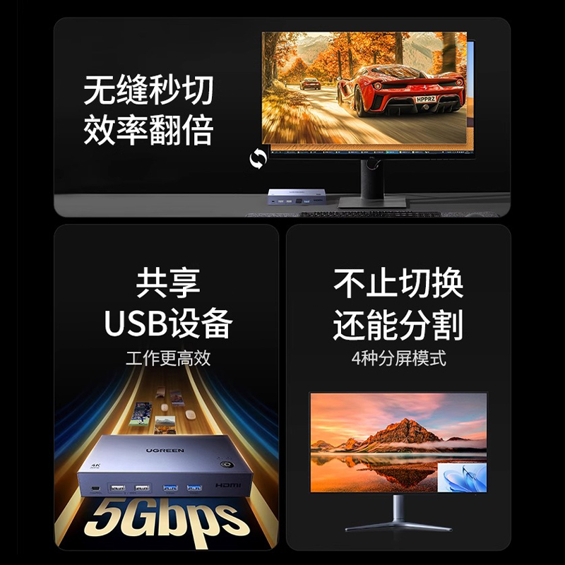 绿联kvm切换器hdmi二进 四进一出一套键盘鼠标控制两台电脑2双主机共用一个显示器带多usb共享同步分配切屏器