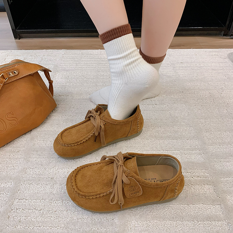 舒适软底单鞋 百搭复古休闲系带平底爆款 女2025春秋新款 全包勃肯鞋